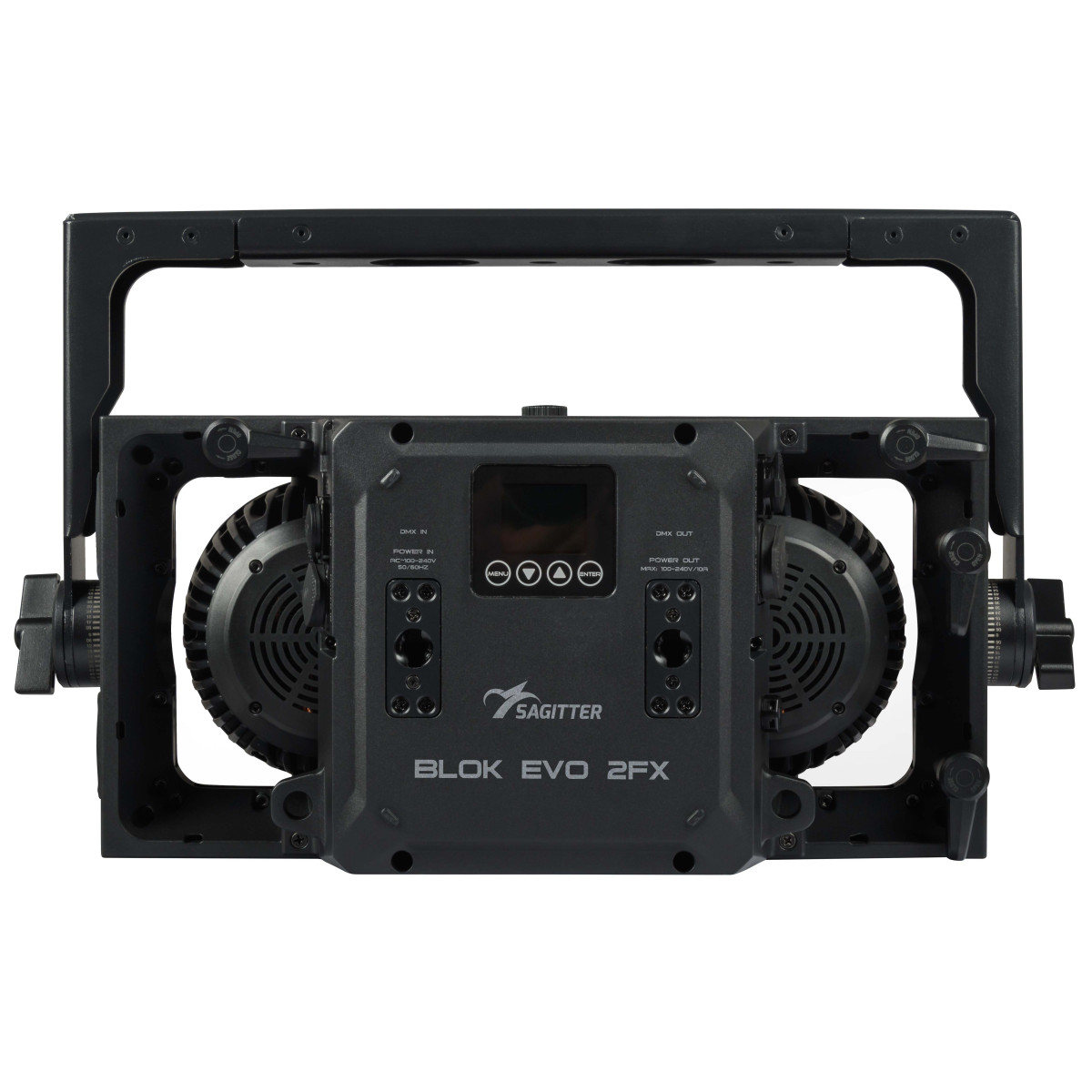| Structure and cabinet | Die cast aluminium housing LCD graphic display Quick-release anchor points, on-board mechanics for stacking multiple devices Pan directional adjustment for each cell: +/- 20° with manual control Mounting points: 2 pairs of 1/4-turn locks omega bracket IP rating: IP65 DMX 5-poles XLR IN/OUT IP65 connectors Low-noise controlled cooling system |