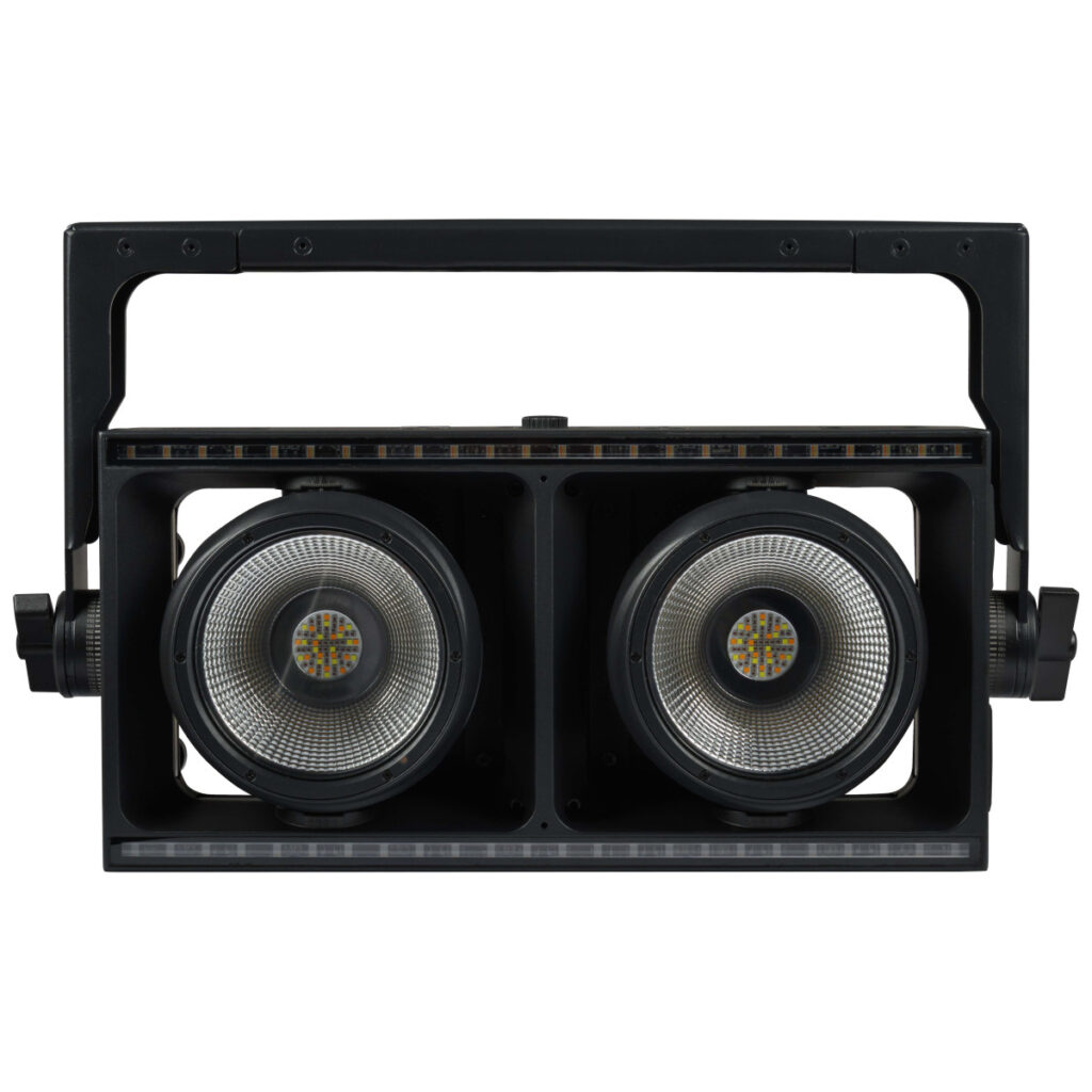 | Structure and cabinet | Die cast aluminium housing LCD graphic display Quick-release anchor points, on-board mechanics for stacking multiple devices Pan directional adjustment for each cell: +/- 20° with manual control Mounting points: 2 pairs of 1/4-turn locks omega bracket IP rating: IP65 DMX 5-poles XLR IN/OUT IP65 connectors Low-noise controlled cooling system |