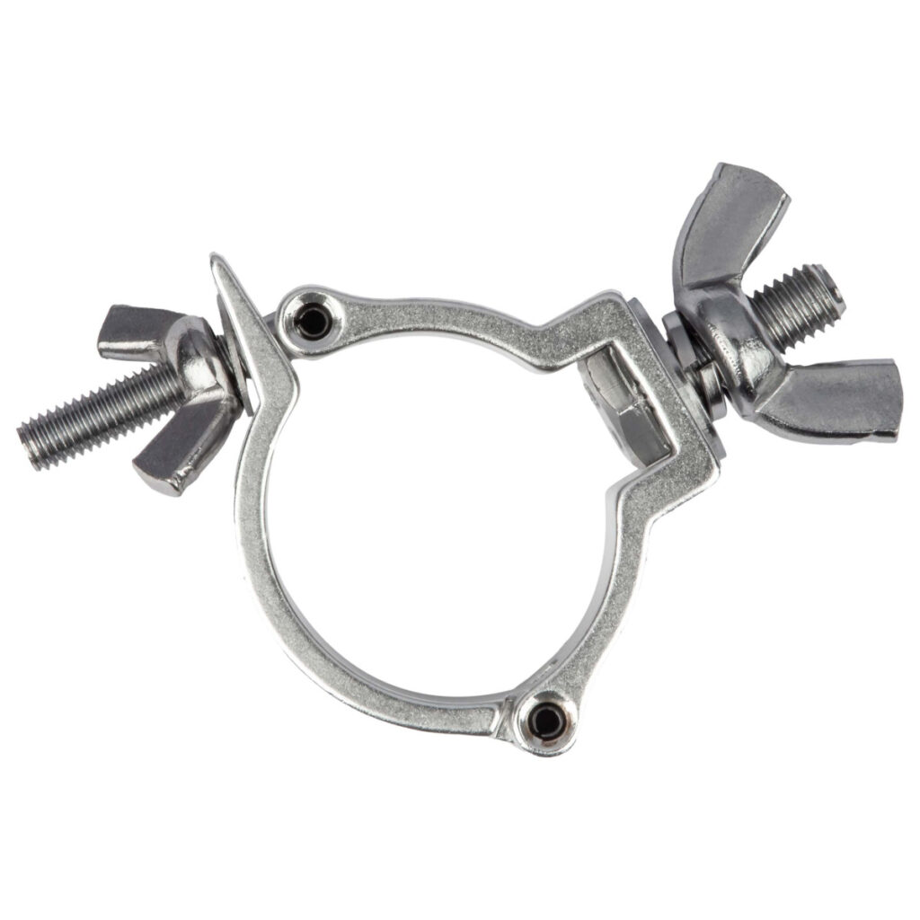 Accoppiatore singolo in alluminio estruso con bullone M10 x 50 con dado bloccante. Ø interno 50.8 mm e può essere utilizzato per tubi da ø 48 a ø 51 mm ( CARICO MAX: 100 Kg).