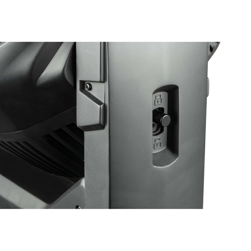 | Struttura e corpo mobile | Struttura in metallo e coperture in plastica pressofusa ad alta resistenza di colore nero Display LCD grafico a colori con pulsanti touch Angolo di Pan 540°/630° selezionabile Angolo di Tilt 270° Sistema di ancoraggio con doppia staffa omega a fissaggio rapido (1/4 di giro) Riposizionamento automatico di Pan/Tilt in seguito a spostamenti accidentali Sistema di blocco del movimento Pan&Tilt Connessione segnale DMX ingresso e uscita XLR 3 poli Connessione di segnale RJ45 etherCON IN/OUT Porta USB per aggiornamento software e ricevitore wireless DMX Grado di protezione IP 20 Raffreddamento a ventilazione forzata controllata elettronicamente “low noise” Noise levels @1m: Fan AUTO 50dB(A), Fan HIGH 53dB(A), Fan LOW 40dB(A) Batteria di backup per l’accesso al menu anche senza alimentazione |