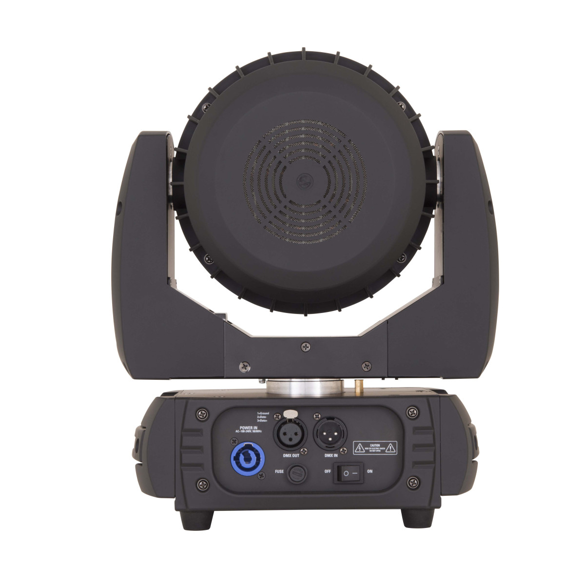 | Struttura e corpo mobile | Struttura in metallo e coperture in plastica pressofusa ad alta resistenza di colore nero Display LCD grafico a colori Escursione: PAN selezionabile 630°/540°/360° e TILT selezionabile 270°/180°/90° Sistema di ancoraggio con omega a fissaggio rapido (1/4 di giro) sulla base Riposizionamento automatico di Pan&Tilt in seguito a spostamenti accidentali non comandati da mixer Connessione segnale DMX ingresso e uscita XLR 3 poli Grado di protezione IP 20 Raffreddamento a ventilazione forzata controllata elettronicamente |